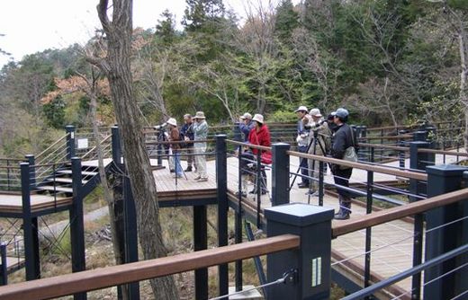 | 灰ヶ峰公園は平成17年4月にオープンした呉市の公園です。灰ヶ峰の東北斜面から大積山の南西斜面にまたがり、市民が自然に親しむことを目的として作られました。 主な施設としては公園の中間部にある林間歩廊が有名です。高さが最大10メートルあり、そこを歩きながら高い木々の葉などを間近に見ることができるものであり、延長距離は300メートルあります。 また林間歩廊は車いすでも通ることができ、公園内は自然観察のための遊歩道があります。 もともとこのあたりは自然は豊かで特に鳥類、昆虫類は比較的古くから調査が行われていた場所でもありました。 呉市ホームページ |