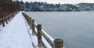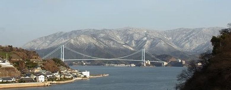 | 野呂山 の雪景色 前方は安芸灘大橋です 上蒲刈から撮影 (ネットから) |