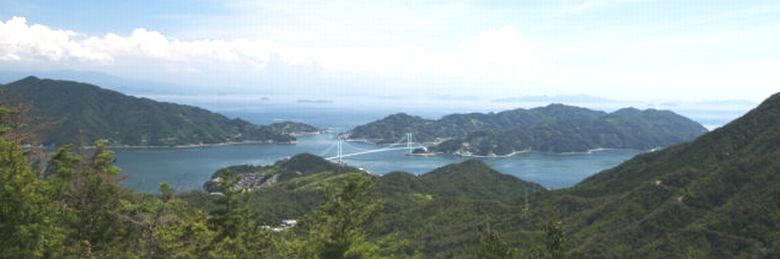 | 眺め! 野呂山東端の 弘法寺から東の風景 (向こうは大芝大橋 と大芝島) 弘法寺から撮影 |