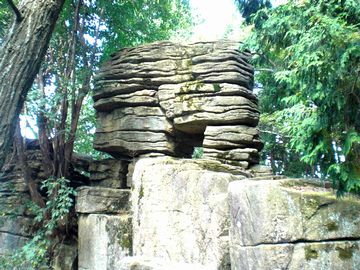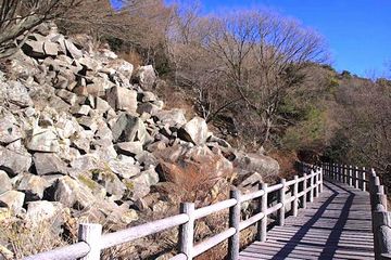 | 野呂山は、約8000万年前にマグマが噴出してできた流紋岩が約300万年前の地殻変動によって隆起したものです。氷河期に急に冷やされたため、いろいろな方向の割れ目が入り、大重岩・小重岩などの珍岩、奇岩ができた。また割れ目に沿って崩れた大きな岩石が谷から落ちたり流されて一ヶ所に集またのが岩海である。 フリー百科事典参考 |