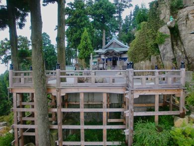 弘法寺は弘法大師空海が御年19歳49歳と2度にわたり登山され、岩屋で修業に専念された地として伝えられる霊山です。 伝えられるところによると『川尻海上に漁人あり、毎夜野路山上に火光を認め、奇異の思いをなして登り見れば弘法大師の像と梵鐘の破片散乱せり』中切地区の住民が相はかりて岩窟に堂を建て弘法大師を祀り毎月21日の大使の命日に御影供養の法要をするようになった。 野路山 伊音城 弘法寺ホームページより |