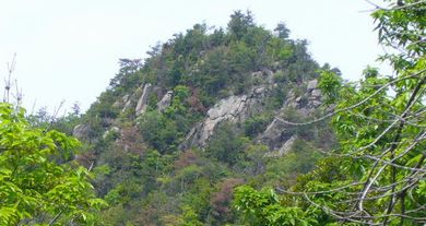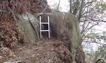 | 途中から見える山頂風景 | 頂上付近は険しい岩道です |