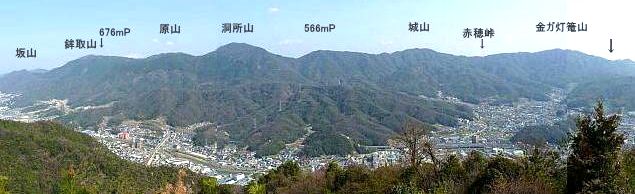 | 中央の低い山は蓮華寺山(標高374m)、この山と 坂山との間に瀬野川が流れており、 左方面にJR瀬野駅があります。 左遠くは小田山(標高719.1m)、右は原山です。 net から |