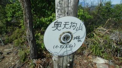 | 左端が 奥天狗(小松尾山) 小屋浦駅 から撮影 netから | 頂上の表示板 |