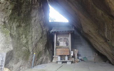 | 観音山の表示板 | くぬき観音 (天然の岩屋に祀られています) |