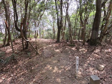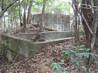 | 山頂の風景 (手前は3等三角点) | 山頂付近の大東亜戦争時のコンクリート跡 |
