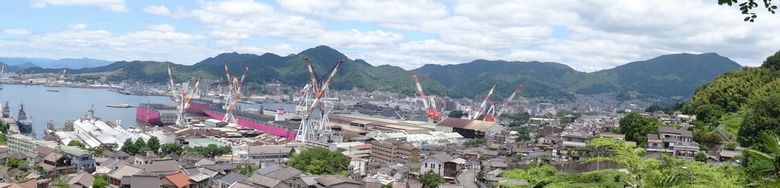 | 中央の山が 鉢巻山 造船所のクレーンと呉市街 子規句碑から撮影 980ピクセル | |