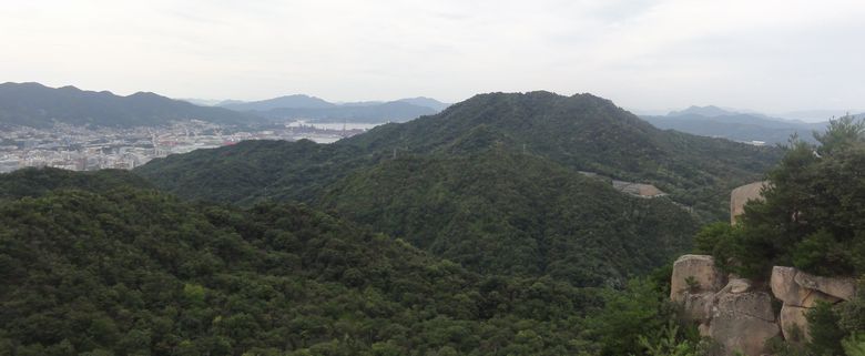 | 八畳岩(焼山)から 鉢巻山 を望む(呉市街 遠くは 呉港) 八畳岩(焼山)から撮影 | |
