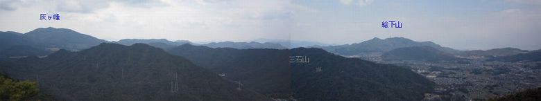 | 眺め! 展望岩からの西風景 (灰ヶ峰、藤ノ木山、三石山、絵下山、熊野団地) (ネットから) | |