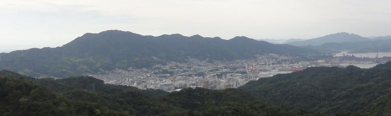 | 休山山系の右端に見える 三峰山 (呉市街と休山連山を望む) (八畳岩(焼山)から撮影) 780ピクセル | |