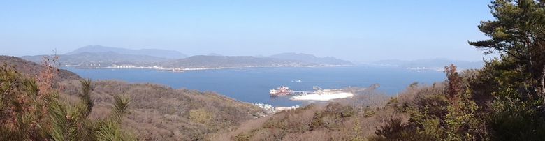 | 眺め! 塩山と言われる「三ッ子島」 遠くは江田島 広島方面 瀬戸島山付近で撮影 |