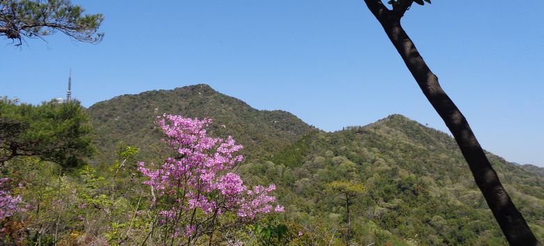 宮ヶ迫山は展望が開けており、焼山住宅街や灰ヶ峰、江田島方向の山々も見渡せます。 |