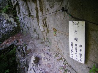 | 断崖絶壁!頭上注意!命綱は大丈夫 ?・・・延々と日電歩道が続く・・・ 半月峡 | ||