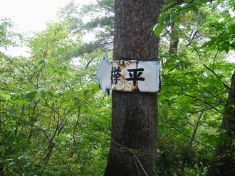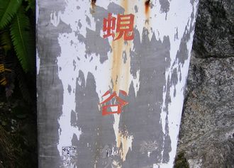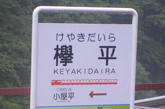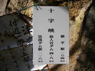 | 水平歩道の「欅平」の表示板 11:10 この水平歩道から欅平駅までは 下り約数百メートルの急坂…下るだけで50分かかりました |