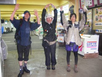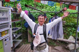 | バンザーイ! (雨と汗で眼鏡が曇っています) このご夫婦が「下の廊下」の背中を押してくれました |