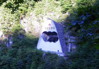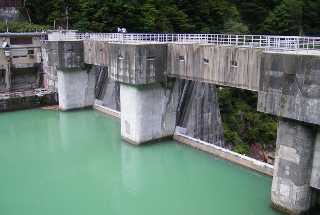 | 仙人ダム 昭和15年に完成した。国家総動員法のもとに作られ、世界でも類を見ない 難工事でした。このダムの工事で高熱隋道 (ダイナマイト暴発)、泡雪崩、歩道転落 など300人以上の死者が出た 16:00 |