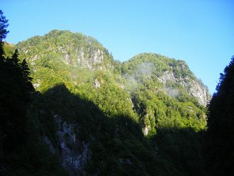 | 数百メートル垂直の絶壁…更に高度が増します 半月峡 | ||