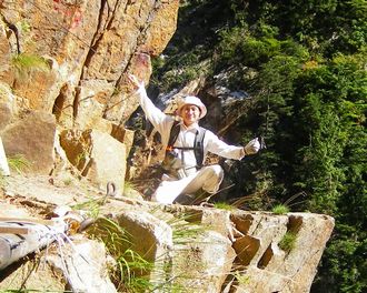 | やっとくつろげる場所を見つけました (白竜峡) | ||