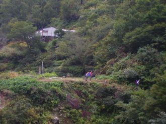 | 10月2日の朝 06:30 阿曽原温泉小屋から欅平に向かう人たち |