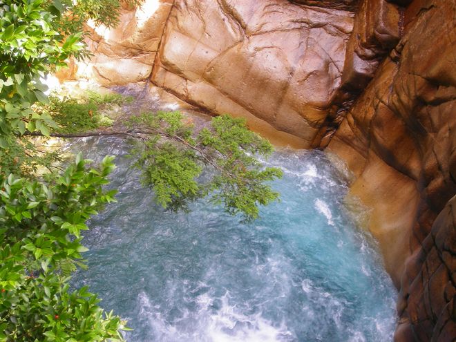 | 剱岳から流れる水はスカイブルーでした (吊橋から撮影) | ||