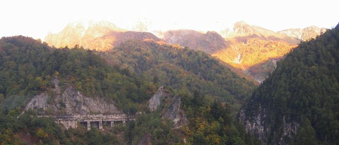 | 10月2日(金) (曇りのち雨) 06:30 阿曽原小屋 08:15 折尾谷 09:15 大太鼓 09:40 志合谷 10:31蜆谷(しじみだに) 11:10 欅平上部 12:00 欅平 14:00 宇奈月着 入善(友人宅宿泊) 10月3日(土)入善 → 広島 20:30 自宅着 |