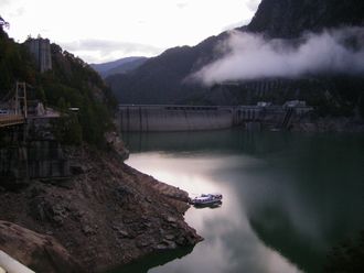 | 9月30日 の黒部ダム 明日の入山許可を祈りつつ「ロッジくろよん」に宿泊 |