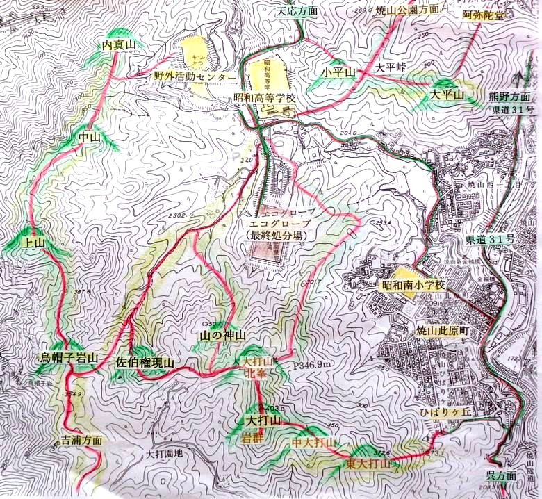 (烏帽子岩山、大打山、佐伯権現山、大平山、小平山など)