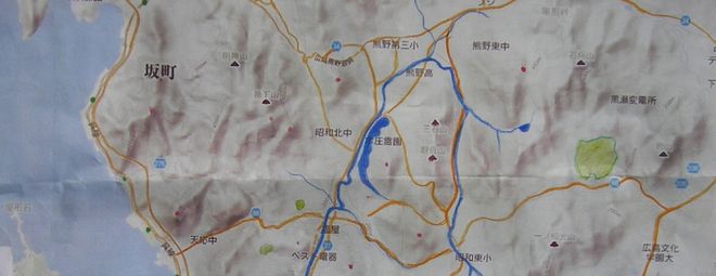 | 野間重能(のましげよし)は文安2年(1445年)足利義政から矢野荘を与えられ 地頭職として入国し、矢野の保木城(矢野城)に居を構えて苗代、栃原、 焼山、押込等を領有していた。、野間興勝の時代になって東方からの勢力に 対して掃部城を作ったといわれている。 掃部城山の頂上 (421m) は二の丸で、その東麓のこんもり繁った小山 (311m) に本丸がありました。 掃部城山頂上の二の丸から、しし岩を経て、狐ガ城。めおと岩、観音山、 三石山(のうそ山)へと尾根伝いに櫓(やぐら)を配置し、連郭式山城が 構築されていた。 本丸の西に幅30mの谷、東に焼野川(二河川の上流)があり、守りに適した 山城と伝えられています。 野間隆則の時代になって、興勝の没後9年後(1555年)に野間氏は毛利氏に 滅ぼされている。(昭和東公民館所蔵本から) |