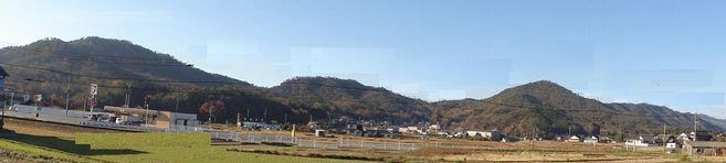 | この5連山が野間氏の「連郭式山城(れんかくしきやましろ)」です (苗代から撮影・・・ ) |