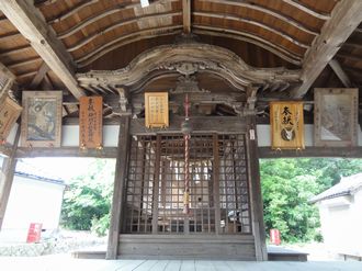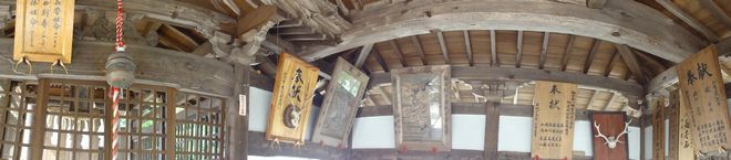 | 拝殿正面 | 拝殿正面の格子戸から奥を撮影 |