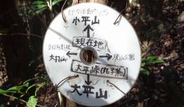 | 北(下り坂)=焼山公園 方面へ | 大平峠の道しるべ | |